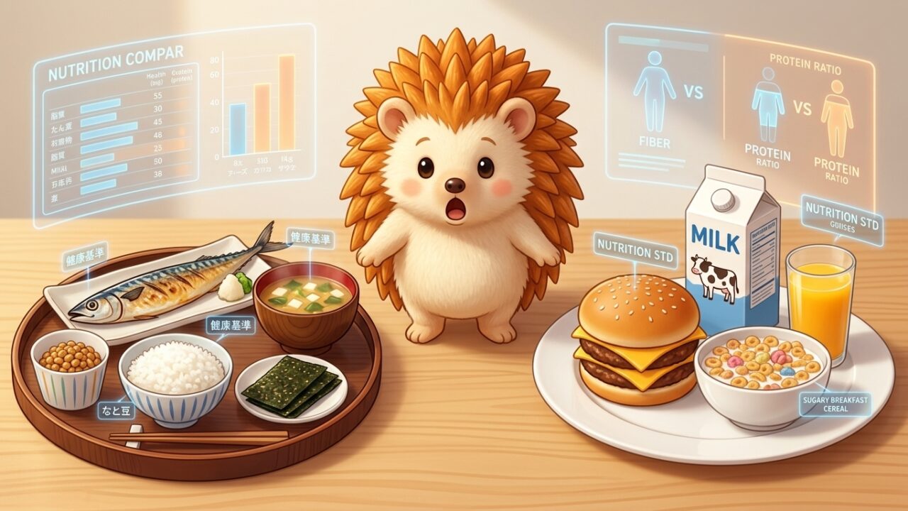 大げさなわけじゃないよ、ハリーちゃん(笑)。実は日本とアメリカでは、同じ栄養素でも推奨量が全然違うことがあるんだ。カルシウムで最大33%、ビタミンDで40%、食物繊維で42%もの差がある。でもこれは「どちらかが間違ってる」んじゃなくて、食文化・体格・食品政策・科学的根拠の蓄積量が反映された結果なんだよ。
